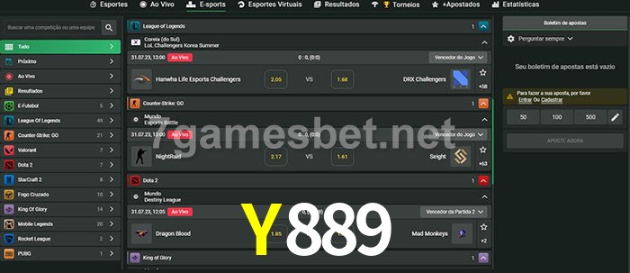 O Y889 oferece uma grande seleção de opções de apostas em e-sports com probabilidades competitivas